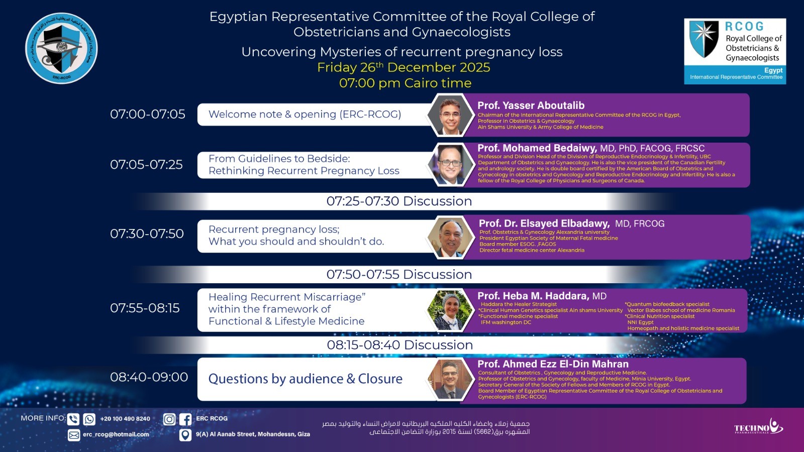 The Egyptian Representative Committee of the Royal College of Obstetricians & Gynaecologists (ERC-RCOG) invites you to a specialized live free certified webinar featuring a panel of distinguished experts. Join us as we bridge the gap between clinical guidelines and bedside practice.